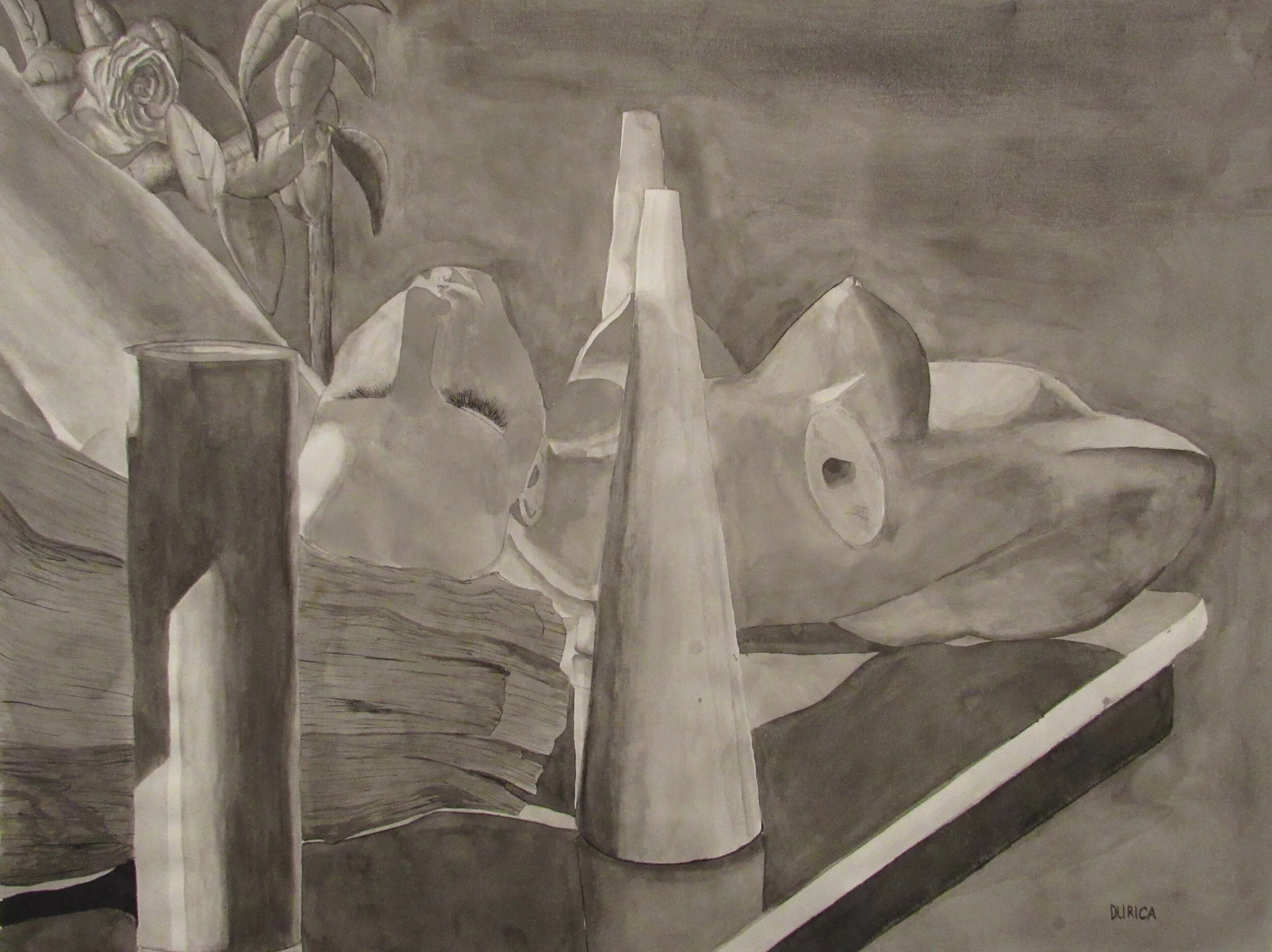 Pencil, Charcoal, Ink Wash